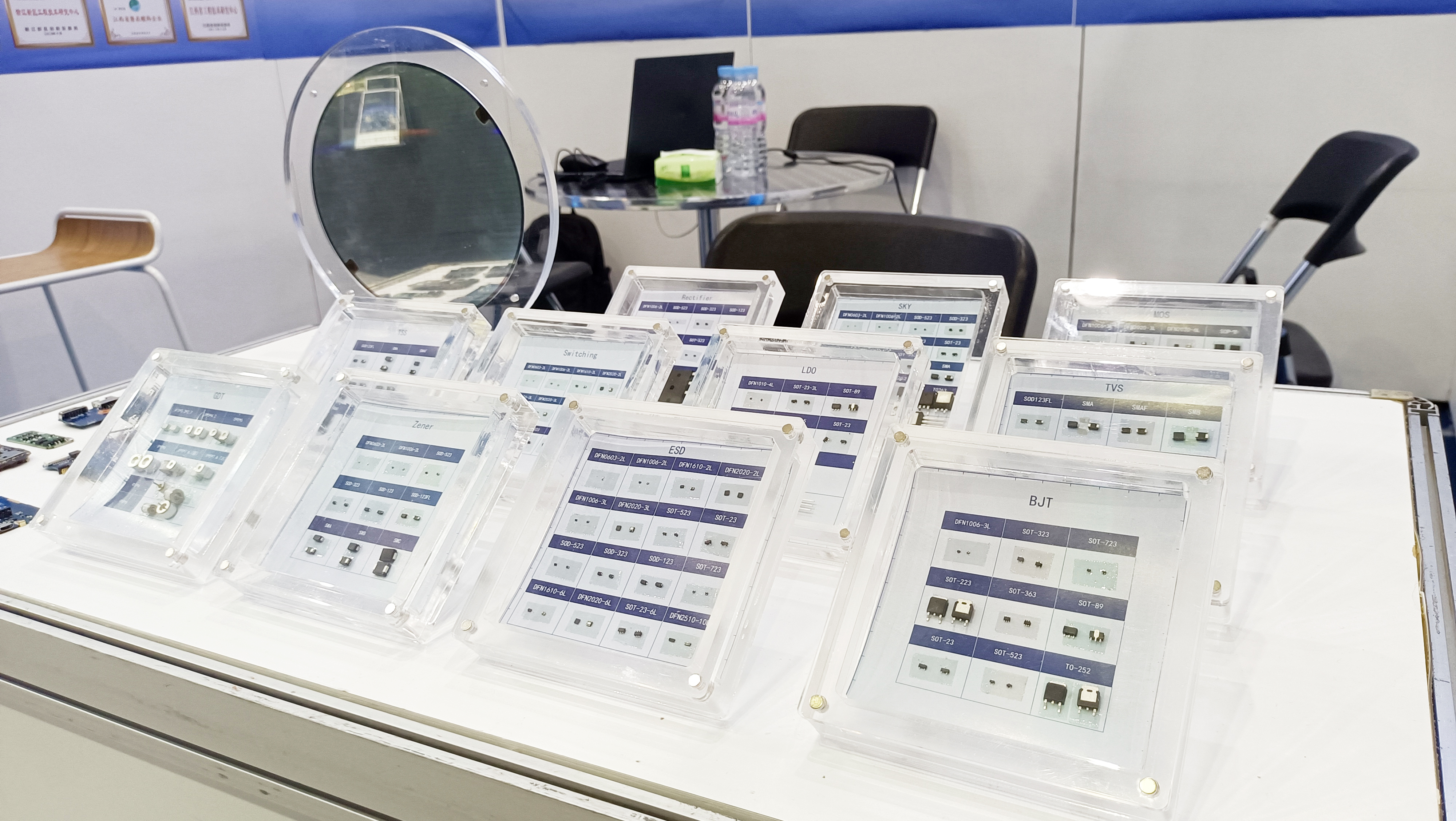 leyu微电子展示了多款主营产品,包括保护器件、二三极管和MOSFET、模拟IC等。